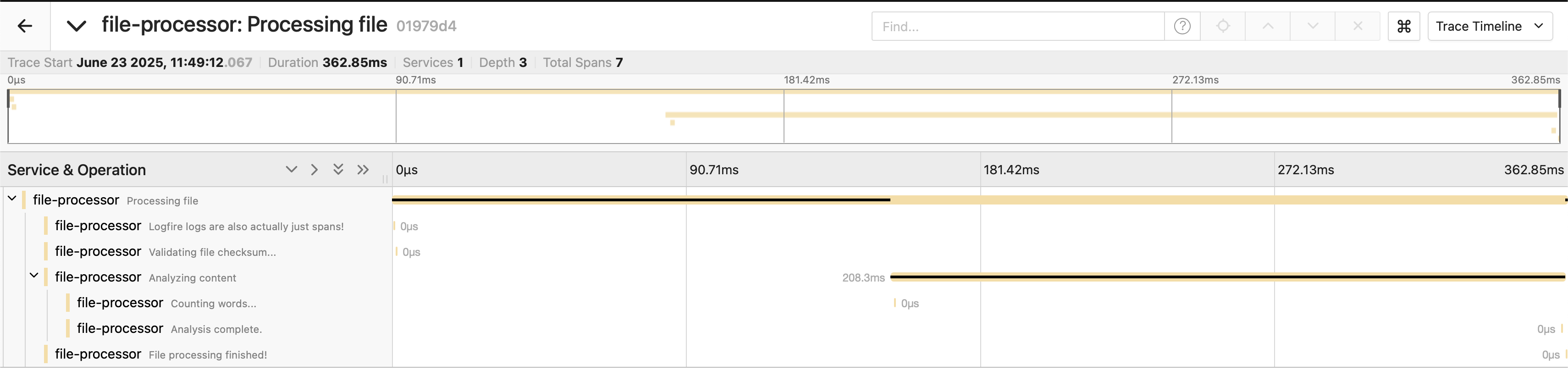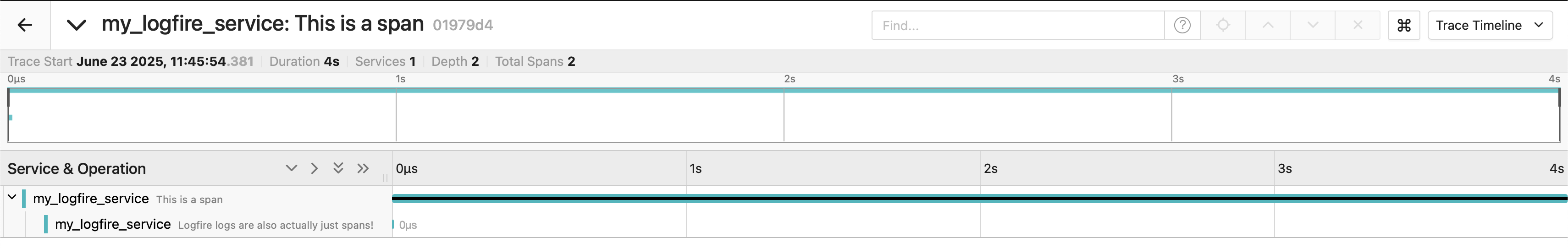 Finally open http://localhost:16686/search?service=my_logfire_service to see the traces in the Jaeger UI.